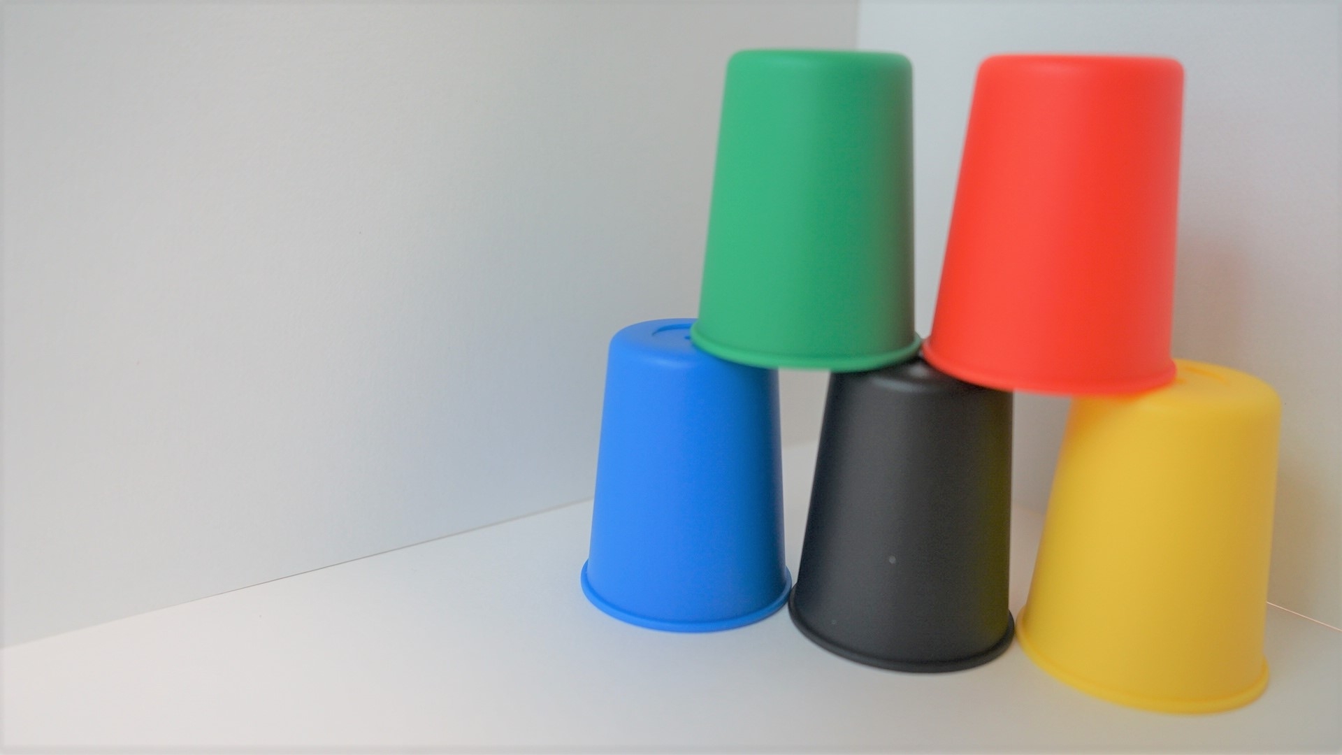 スポーツスタッキング専用のカップは軽量で、滑りにくい特殊なプラスチック素材で作られています。競技では時間を正確に測るため「スタックマット」と呼ばれる計時機器を使用し、3個・6個・12個などの決められた配置に合わせ、順番通りに積み上げ、崩すことで記録を競います。